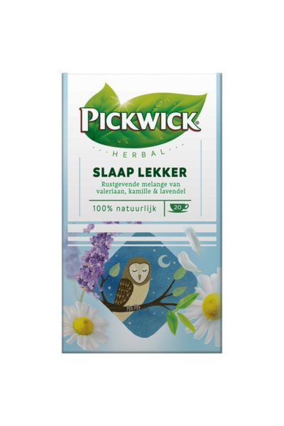 Total Blue va ofera din stoc import Olanda Pickwick Slaap Lekker ceai de dormit cu valeriana, musetel si lavanda 20 pliculete.Acest amestec de plante de valeriana, musetel si lavanda sustine un somn bun. Valeriana este o planta care ajuta la un somn bun.Import Olanda, ceaiul de dormit cu valeriana, musetel si lavanda de la Pickwick este la fel de bun și pentru cei care nu au probleme in a adormi, dar au nevoie de un somn profund, linistitor si odihnitor.