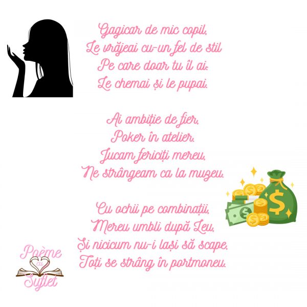 Fiecare poezie este unică, realizată pe baza detaliilor oferite, astfel incat mesajul să fie personal, sincer și memorabil.
