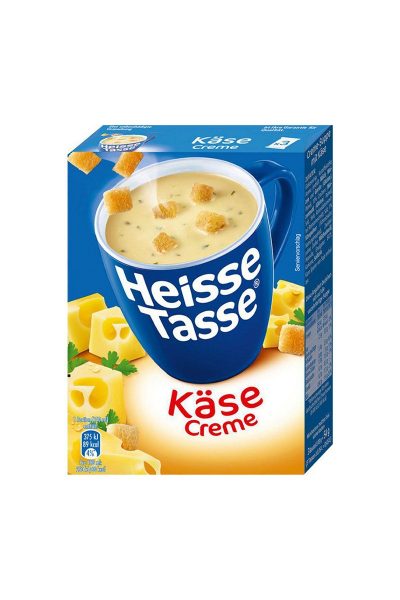 Total Blue va ofera din stoc supa crema de branza, produs import Gemania.Supa instant de branza este usor de preparat si indiscutabil extrem de delicioasa, ce a devenit o mancare adorata de oameni din multe tari. Import Germania supa crema de branza de la Heisse Tasse are un gust inconfundabil si cremos. Supa de branza este recomandata pentru persoanele pofticioase de toate varstele. 1 pachet Heisse Tasse Supa crema de branza contine 3 plicuri de supa instant.