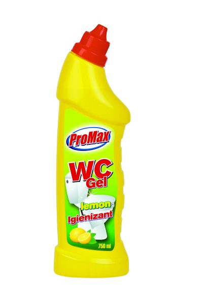 Total Orange livreaza din stoc Promax WC Gel Lemon destinat odorizarii si dezinfectarii vaselor de toaleta.Produsul se aplica circular in partea superioara a vasului de toaleta cu ajutorul opercului aflat sub capac prin strangerea usoara a flaconului. Pentru o dispersie uniforma se recomanda umezirea vasului inainte de utilizare. Pentru dezinfectare se lasa produsul sa actioneze pe vasul WC-ului minim 30 minute. Odata cu folosirea apei vasul de WC va fi dezinfectat curatat si va emana un miros placut.
