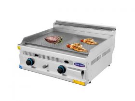 Gratar pe gaz natural cu placa striata de 120 mm, de banc, constructie inox, valva de siguranta si termocupla, aprindere piezo, fiecare arzator functioneaza independent, sertar de scurgerea a grasimii.