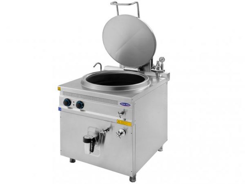Marmita incalzire indirecta, constructie inox, termostat, robineti scurgere si umplere apa calda - apa rece, indicator de nivel, manometru.