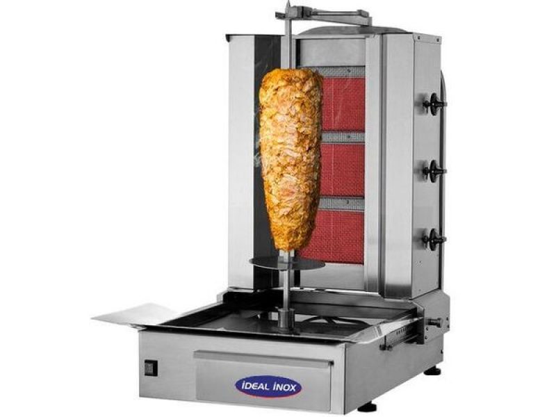 Aparatul kebab este prevazut cu un corp mobil (arzatoarele se pot apropia de carne ). Arzatoarele aparatululi de kebab functioneaza independent si sunt prevazute cu plasa de protectie. Aparatul kebab prezinta o tepusa detasabila, iar motorul care actioneaza tepusa de shaorma este pozitionat in partea de jos. Arzatoarele sunt pozitionate orizontal.