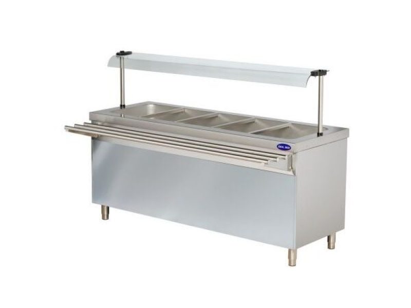 Bain Marie cu spatiu depozitare, geam, drum pentru tavi, constructie inox, termostat, capacitate 5*GN 1/1.