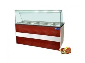 Bain Marie cu spatiu depozitare, geam, drum pentru tavi, constructie inox, cadru lemn, termostat, capacitate 5xGN 1/1.