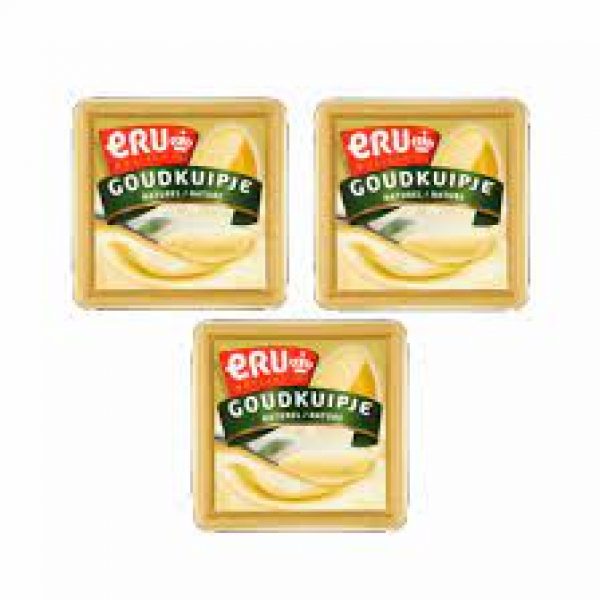 Total Blue comercializeaza din stoc branzeturi ERU 100 de grame, productie Olanda. ERU Goudkuipje este o crema de branza tartinabila, facuta din branzeturi Gouda. ERU Goudkuipje, o branza gustoasa pe un sandvis, dar si delicioasa pe un biscuit cu felii de castraveti.
