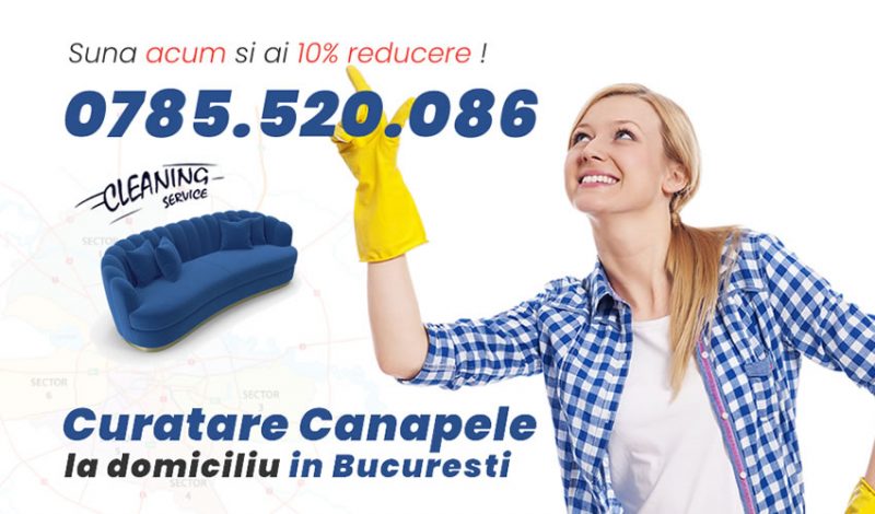 Oferim servicii de curatare pentru canapele la domiciliu, in Bucuresti si imprejurimi, cu personal calificat si specializat in domeniul curateniei. Curatam canapele din material textil, canapele din piele naturala, canapele din piele ecologica, huse canapele, tapiterie pentru canapele. Folosim detergenti cu uscare rapida si substante dedicate diverselor tipuri de suprafate. Serviciile noastre profesionale de curatare a canapelelor si fotoliilor (inlaturare pete, transpiratie, mirosuri neplacute, bacterii, acarieni, urmele de uzura, murdarie, par de caine si pisica etc.) sunt realizate pe loc la domiciliu tau! Profita de SUPER PRETUL nostru la serviciul de curatare canapele! Pretul incepe de la 99 lei / canapea! Iti oferim si 10% reducere la prima solicitare de curatare ca sa te convingi de calitatea serviciilor noastre! Ne deplasam RAPID si GRATUIT oriunde in BUCURESTI! Apeleaza-ne ACUM sau contacteaza-ne pe WhatsApp!